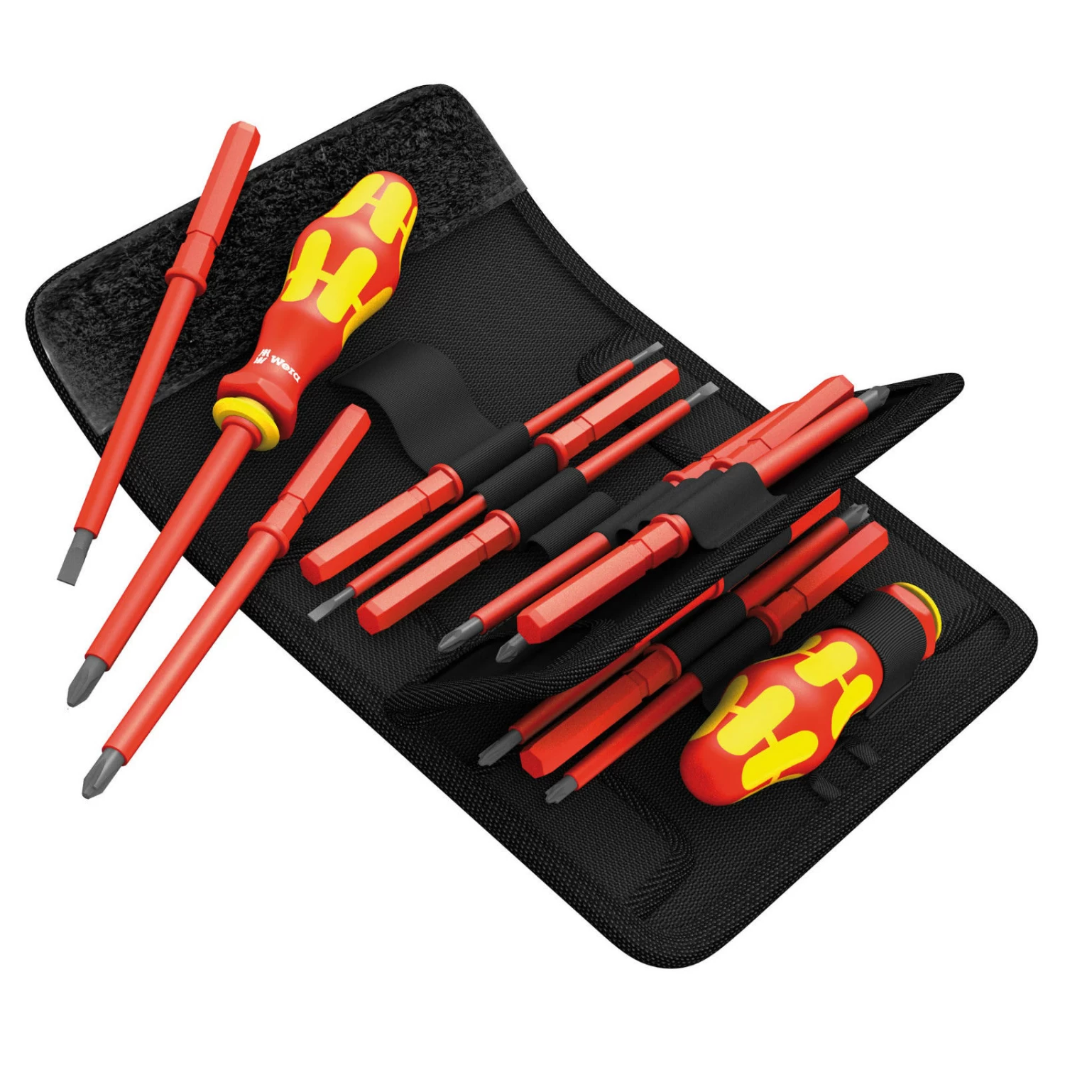 The Wera Kompakt 1000V insulated VDE Screwdriver Set comes with 17 interchangeable blades including slotted Phillips Pozidriv Torx and PlusMinus/MCB blades. The screwdriver tip is made from powerbit grade steel for unbeatable strength.